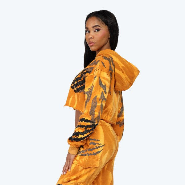 PU PATCH CROPPED HOODIE - JOELLE FIT - Cropped Length - Flame effect - Claw patch - Frayed hemming